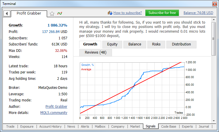 - News - through this tab the signal provider can inform subscribers of any change in the signal and post other useful information.