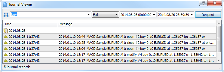 2. Terminal: Added a separate window to view the logs of the terminal, Expert Advisors and Strategy Tester. It's a more convenient way to view logs and filter them by keyword and date if needed.