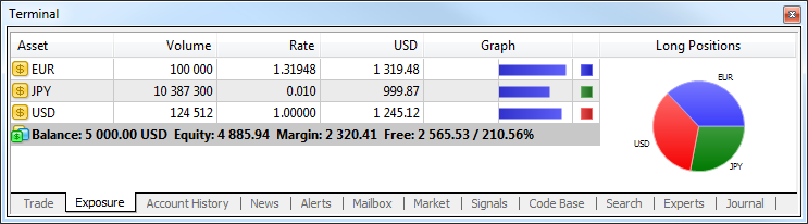 4. Terminal: New "Exposure" tab added in the "Terminal" window to show the summary information about the state of trader's assets for all open positions.