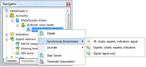 - Synchronize MetaTrader 4 terminal environment.