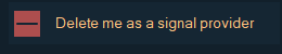 - Если вы зарегистрировались в качестве поставщика сигналов и хотите стать подписчиком, нажмите «Delete me as a signal provider» в левом нижнем углу программы при входе в систему в качестве поставщика. Затем вы можете войти в систему как подписчик.