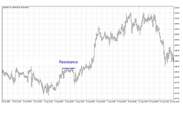 The support and resistance line/level is a certain level reaching which the price cannot fall or move higher, respectively. In any market with a stable trading range prices will meet resistance and support levels. In other words, when the price reaches a certain level, the bulls or bears begin aggressive buying or selling, because they do not agree to any level, and at some point supply and demand in the market are equal, thus forming resistance or support lines. However, if there is an upward or downward breakout of a trading range, the previous support level becomes the level of resistance (Fig. 4), and the level of resistance, on the contrary, becomes the level of support (Fig. 5).