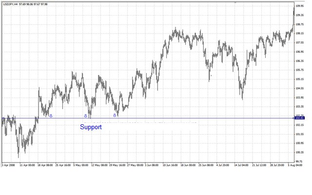Bars (Fig.9), candlesticks (Fig.10), the lows (Fig.11) and highs (Fig.12) can also serve as support or resistance lines.