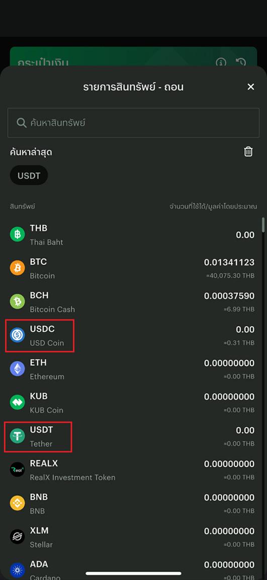 C: ขั้นตอนการซื้อเหรียญคริปโต USDT หรือ USDC