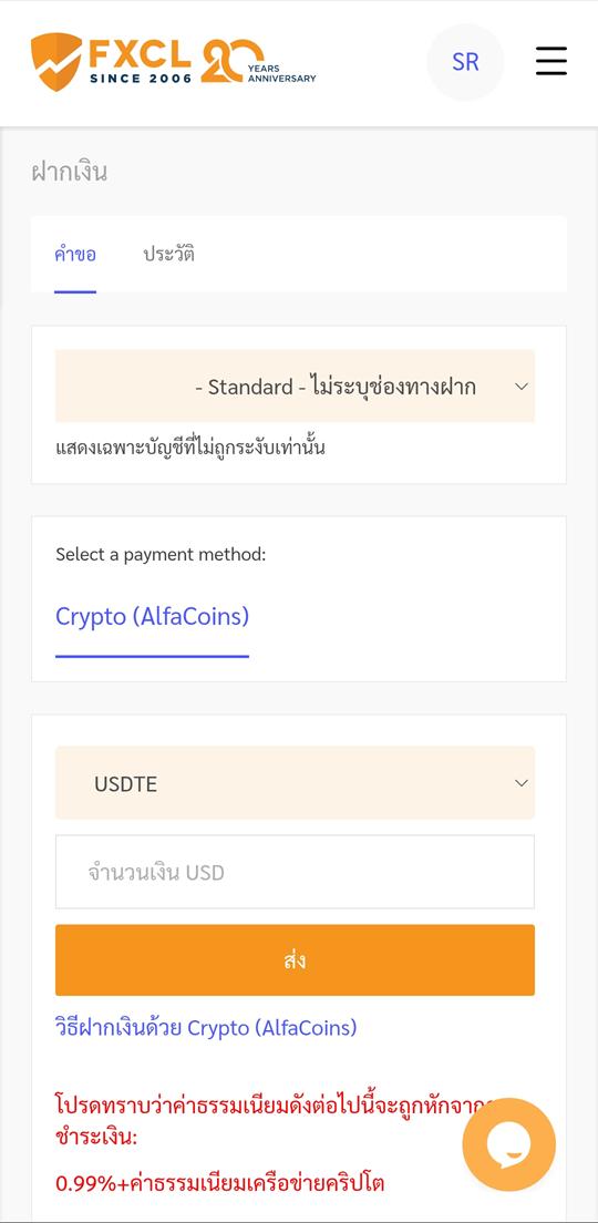 ขั้นตอนการฝากเงินผ่าน Crypto (AlfaCoins)