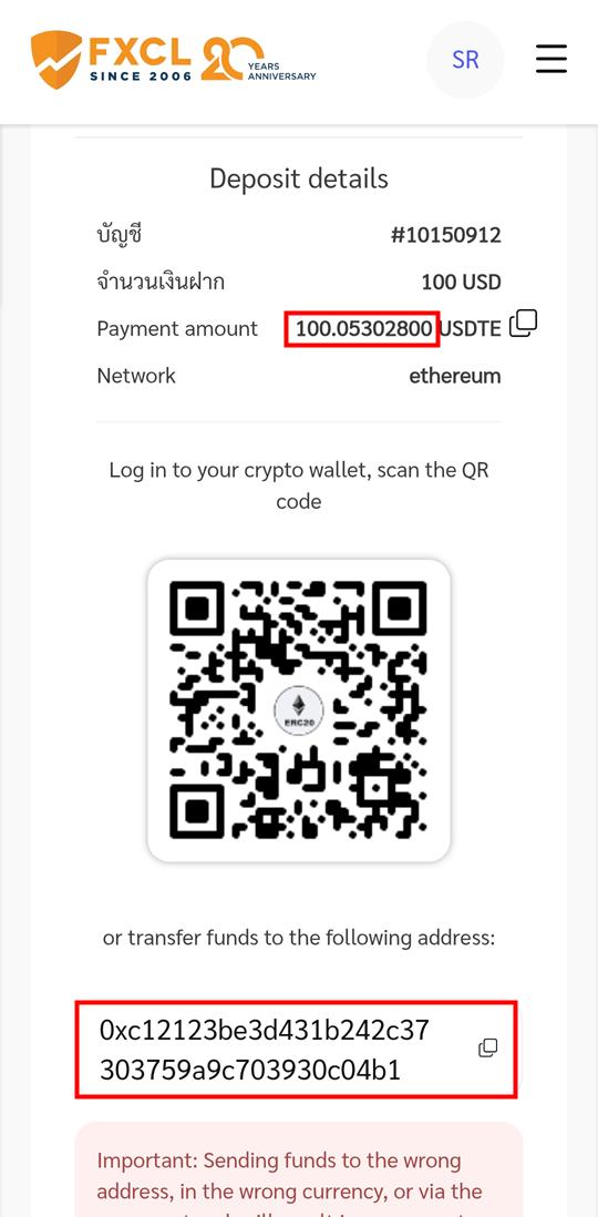 การฝากเงินเป็นระบบอัตโนมัติ โดยปกติยอดเงินจะเข้าบัญชีเทรดภายใน 30 นาที ท่านจะต้องแน่ใจว่าได้เลือก Network ที่ถูกต้องและระบุยอดเงินที่ตรงกัน ซึ่งท่านสามารถ copy จากหน้าฝากเงินภายในคาบิเนตได้เลย ทั้งนี้ ท่านสามารถสำรองเงินไว้ที่บัญชีเทรดอื่นในประเภทเดียวกัน หากมีกรณีฉุกเฉินทำให้ไม่สามารถฝากเงินได้เกิดขึ้นท่านสามารถโอนเงินระหว่างบัญชีเทรดได้