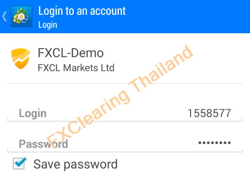 - Password = รหัสผ่าน (จะอยู่ในอีเมลที่ระบบส่งให้ตอนเปิดบัญชีเทรด)