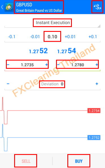 - เมื่อกำหนดค่าเรียบร้อยแล้ว ก็กดเปิดออเดอร์ที่ปุ่ม SELL หรือ BUY ด้านล่างได้ตามต้องการ